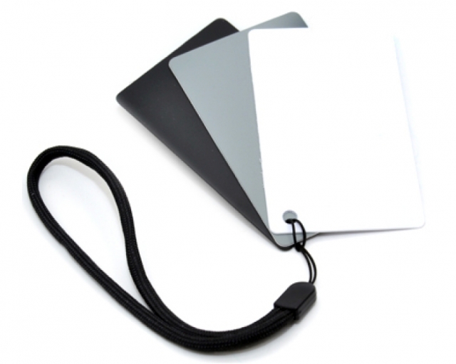 Utilizzando questa serie di tre carte - nero , bianco e neutro grigio semplicemente scattare una foto della scheda nella stessa illuminazione del soggetto è (o era) dentro Utilizzare bilanciamento automatico del bianco e modalità P (Programma) per l'immagine. È possibile utilizzare l'immagine risultante come la base di una impostazione del bilanciamento del bianco personalizzato, oppure è possibile utilizzare la Balance Set picture Card Bianca durante la post-elaborazione per un bilanciamento del bianco personalizzato.